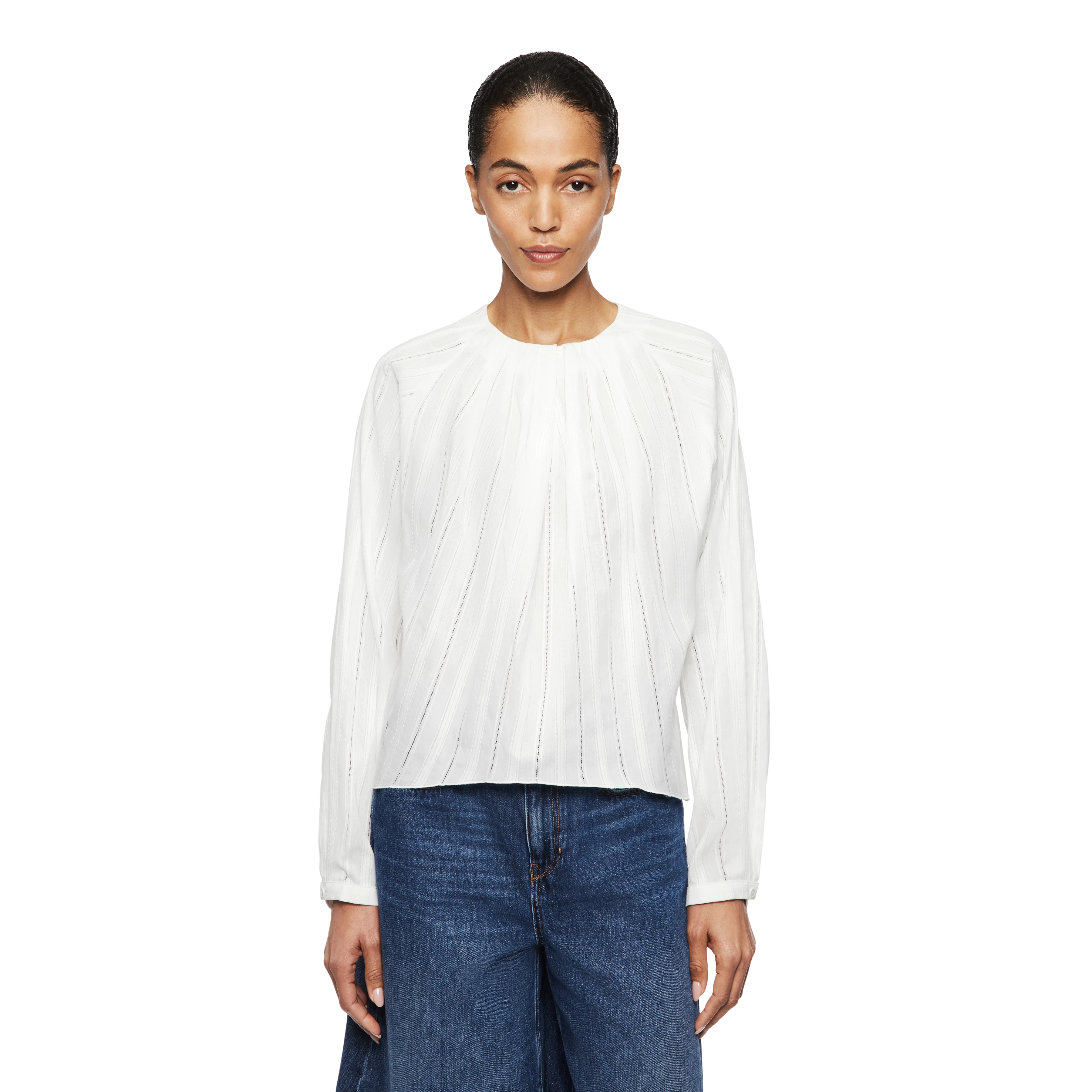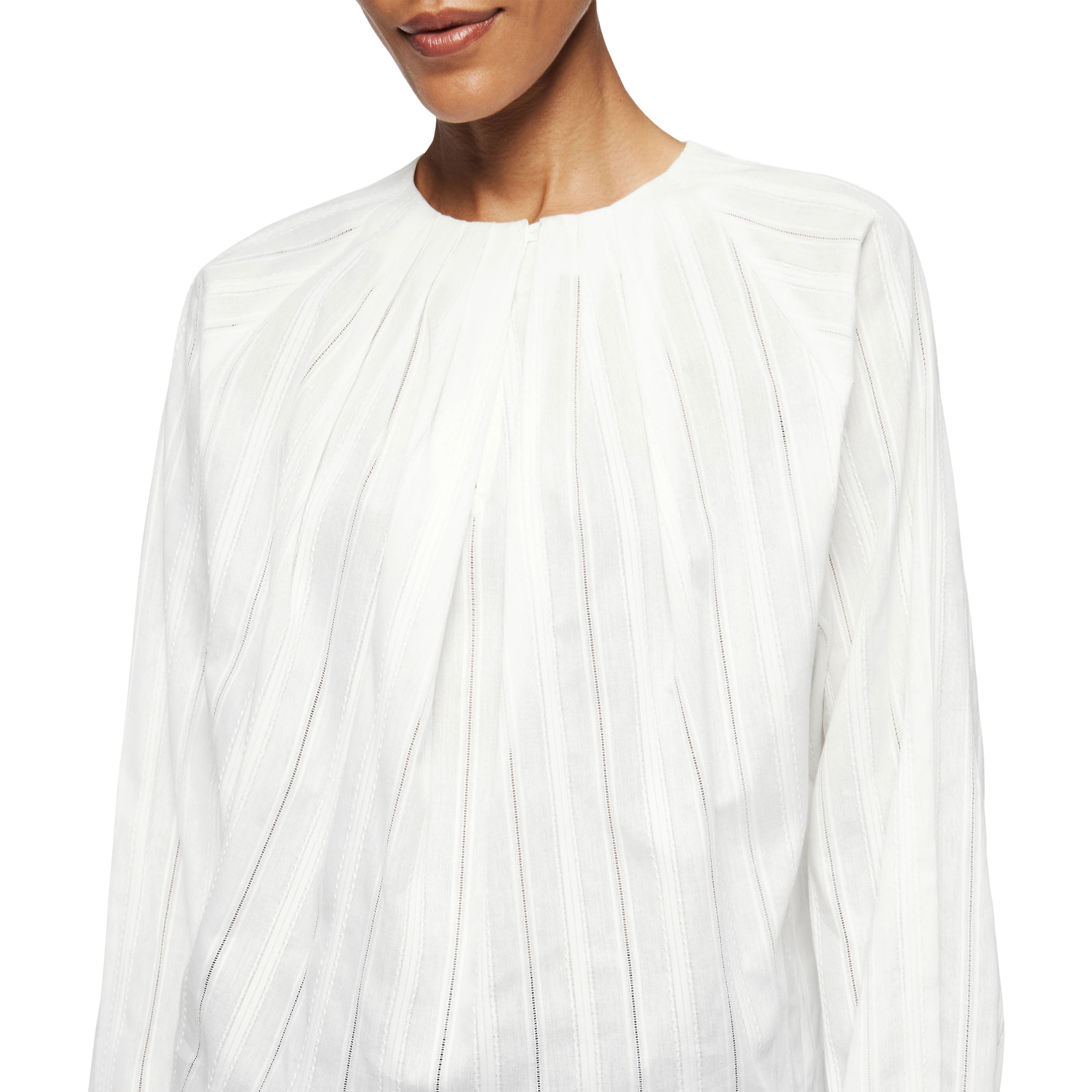 Bluse mit Falten in Voilé mit Ajour Streifen