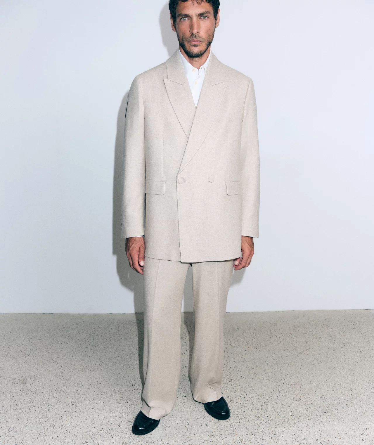 Zweireihiges Sakko mit Spitzkragen in softem Woll-Flanell