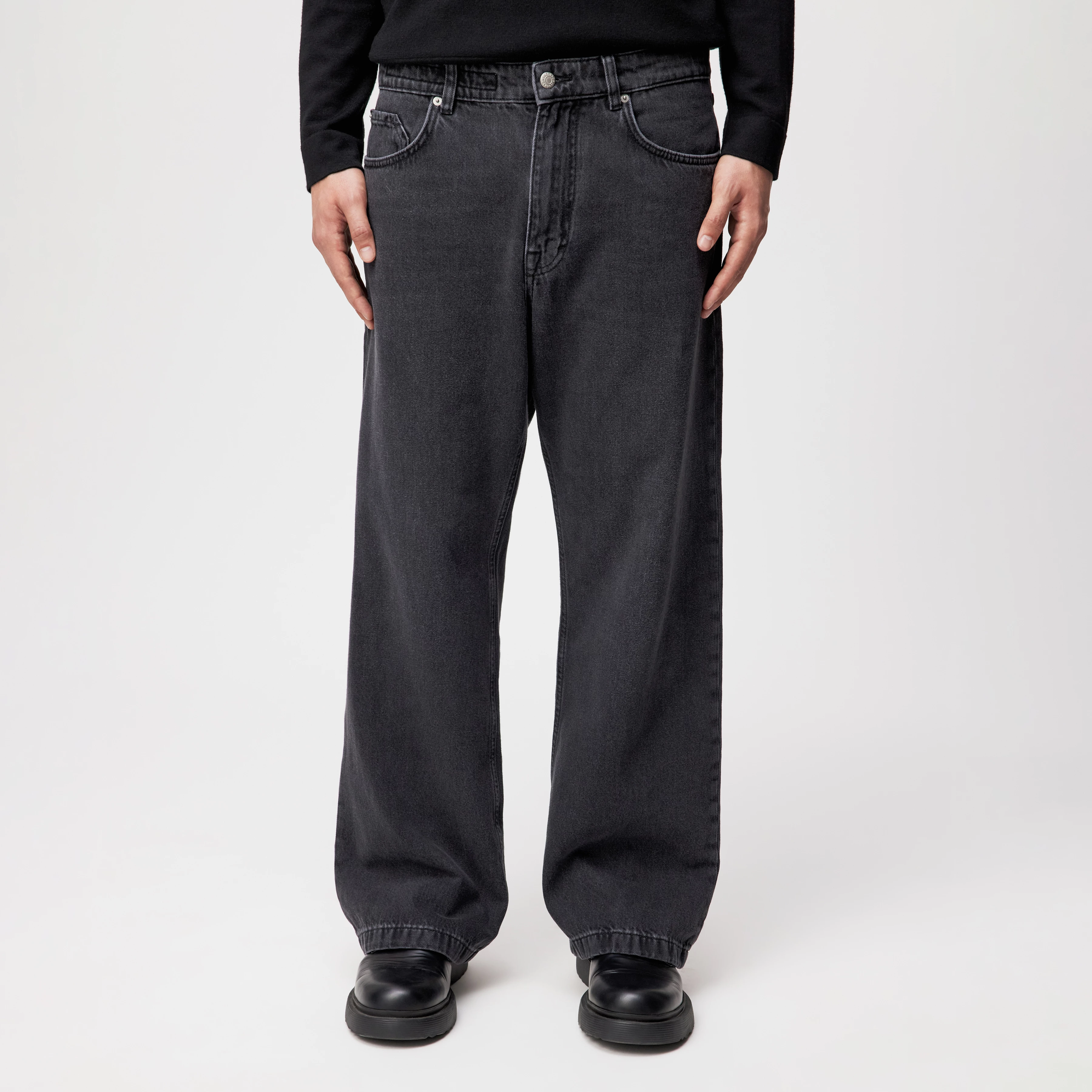 Relaxed fit jeans in donkergrijs denim