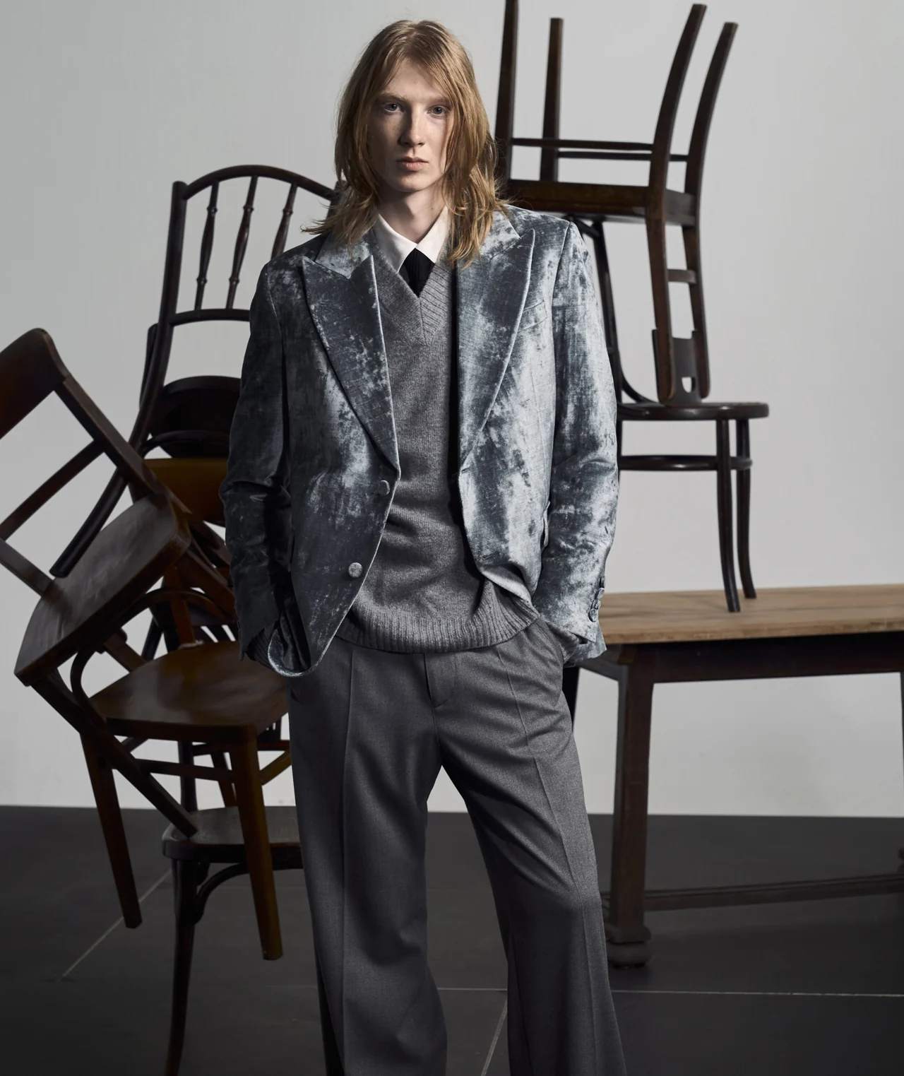 Balans in beweging. Ons eerste lookbook voor lente/zomer 2026 legt deze delicate overgang vast: vertrouwde lagen weergegeven in verfijnde texturen, tot leven gebracht door optimistische, opbeurende tinten. Warme aardetinten vermengen zich met zachte denim en pastelblauw, terwijl dieprood en gedurfde grafische contrasten een sprankje energie toevoegen. Tegen een strakke, minimalistische achtergrond roepen de beelden de serene helderheid van het tussenseizoen op: nuchter maar stralend, zelfverzekerd maar moeiteloos vooruitstrevend.