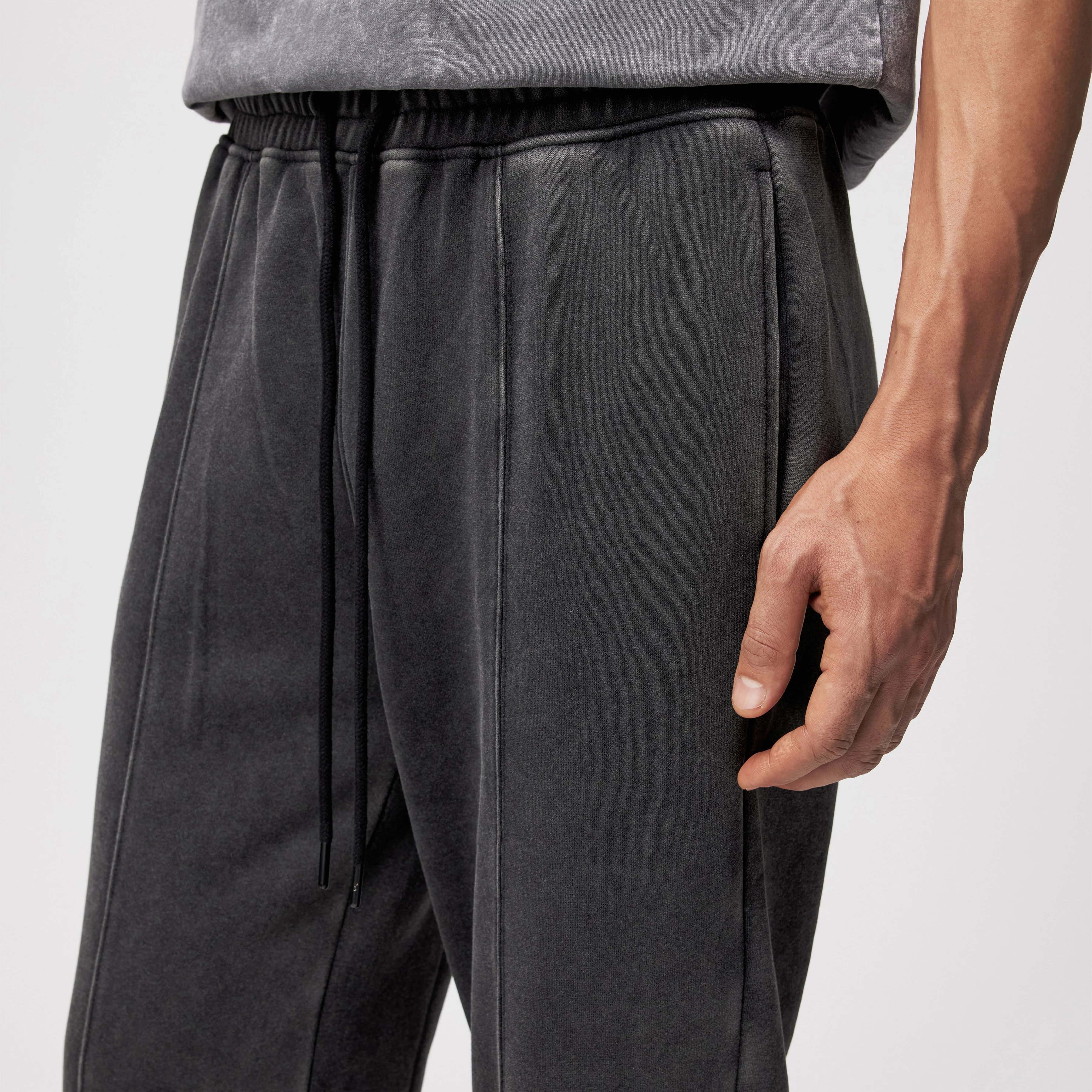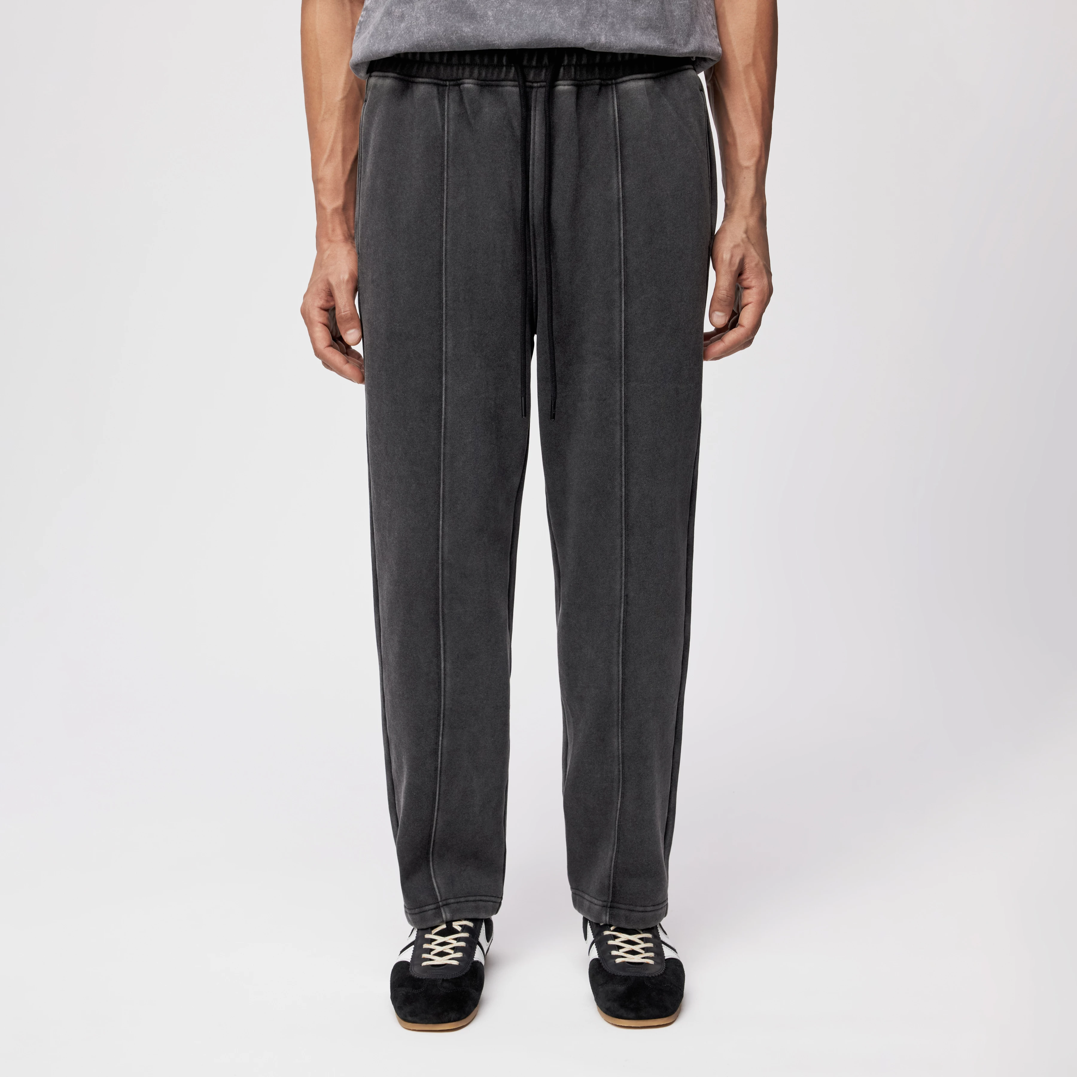 Relaxed fit broek met bandplooien van satijn